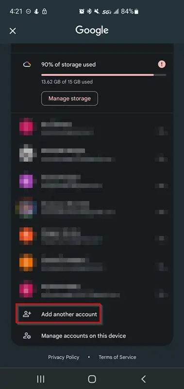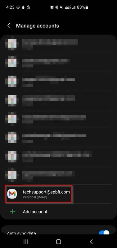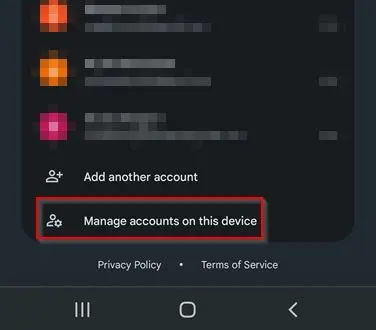 - Click manage accounts on this device.