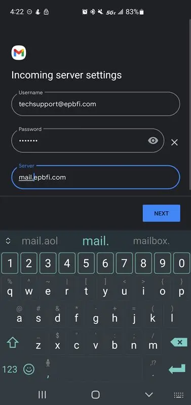 - Enter the incoming server hostname.