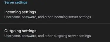 Click on Incoming server settings at the end of the list.