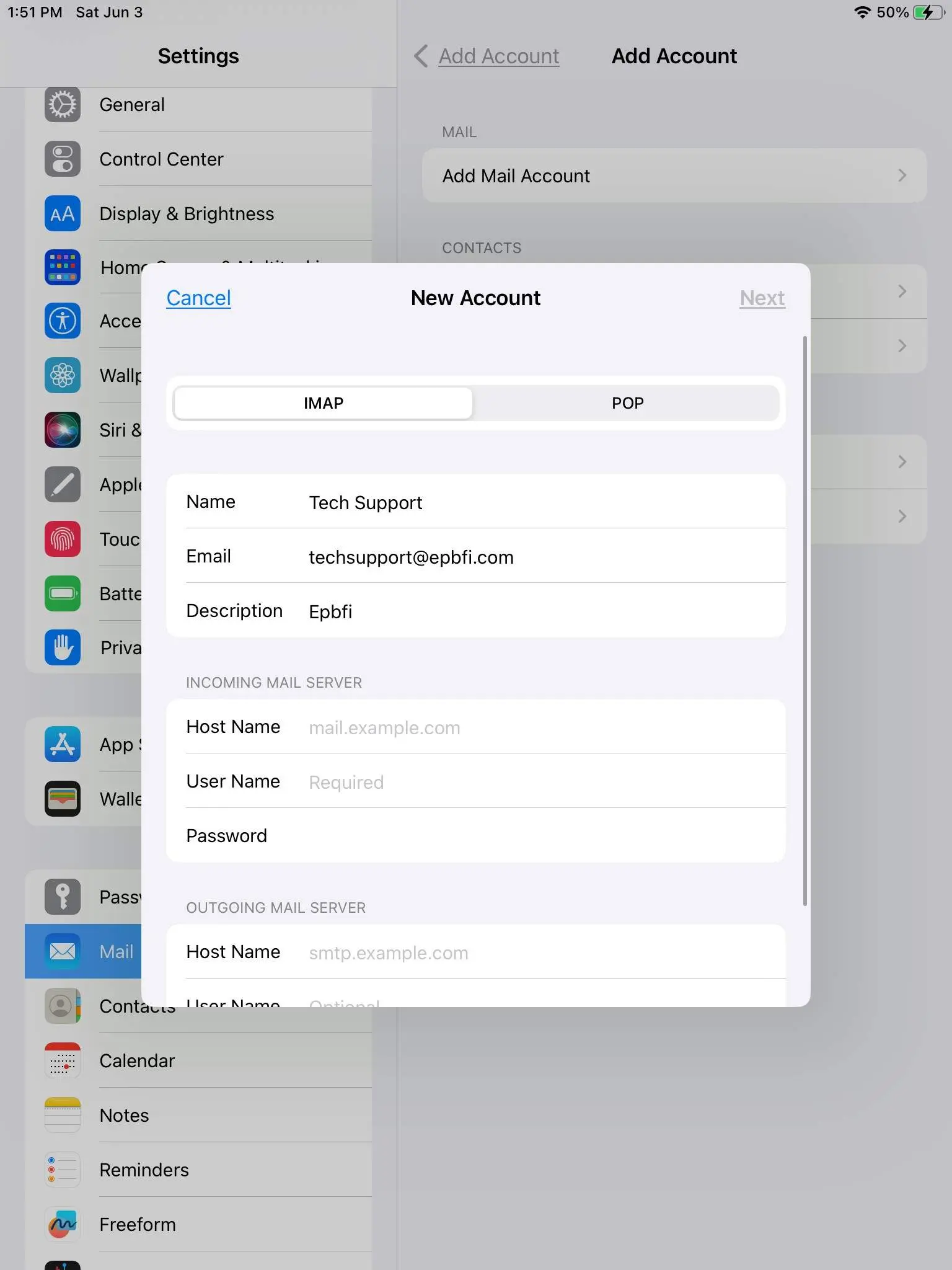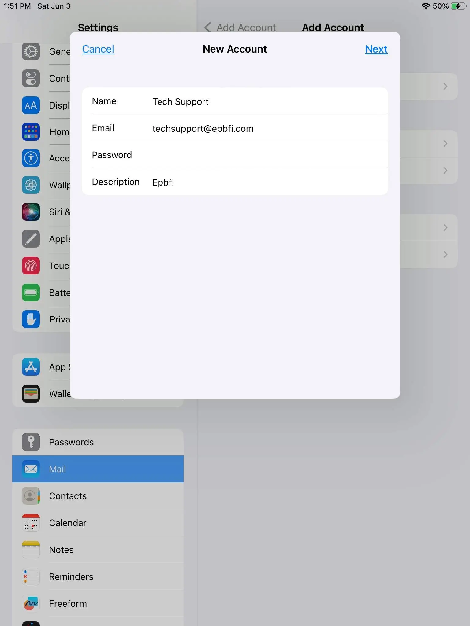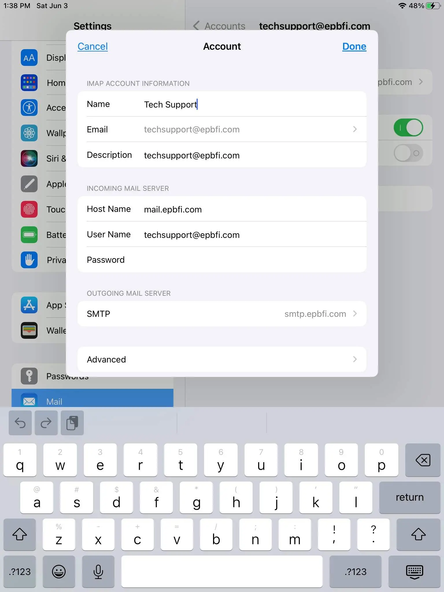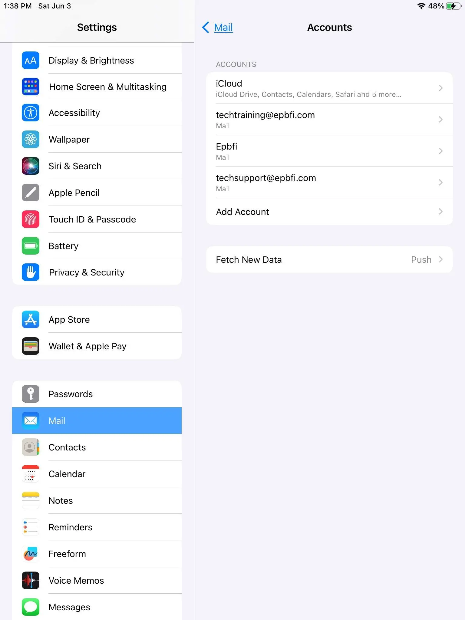 How to for adding epbfi.com email addresses to iOS devices