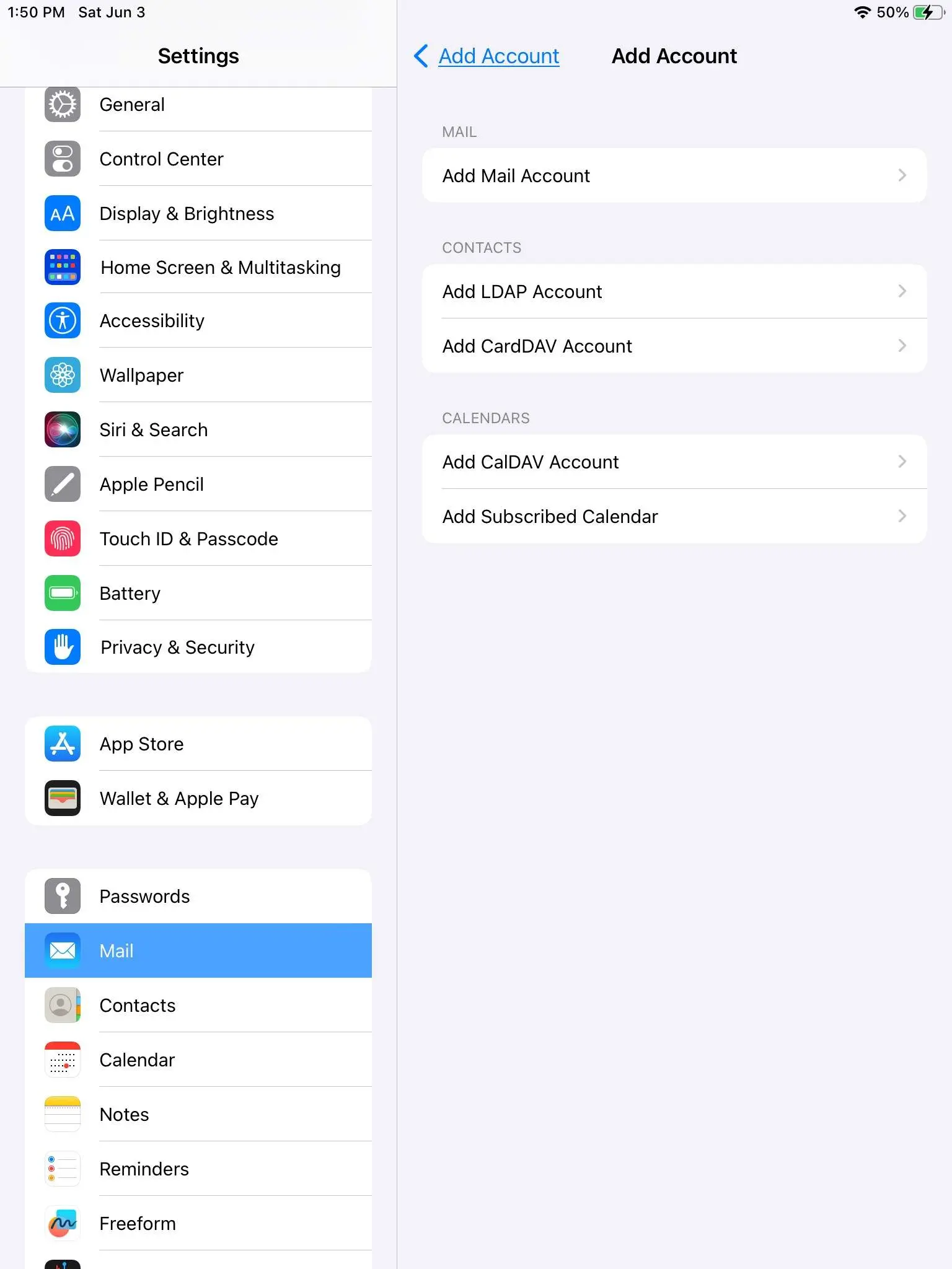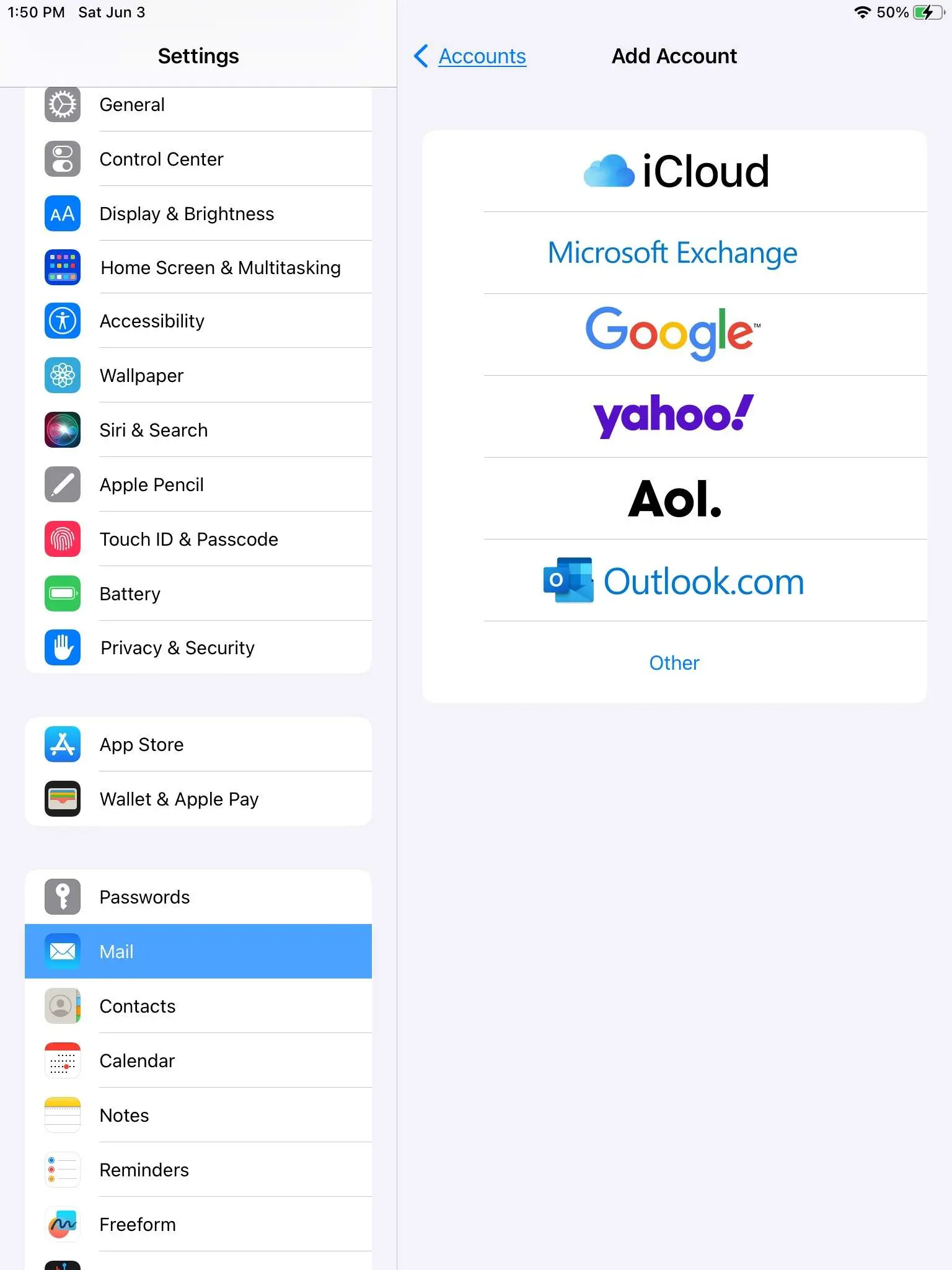- Click on Mail. (on an ipad this on the left, on an iphone you will scroll down)