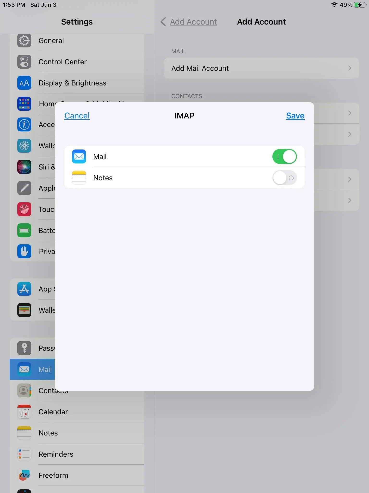 - If verification succeeds, all you have to do is turn on the mail account and click Save.