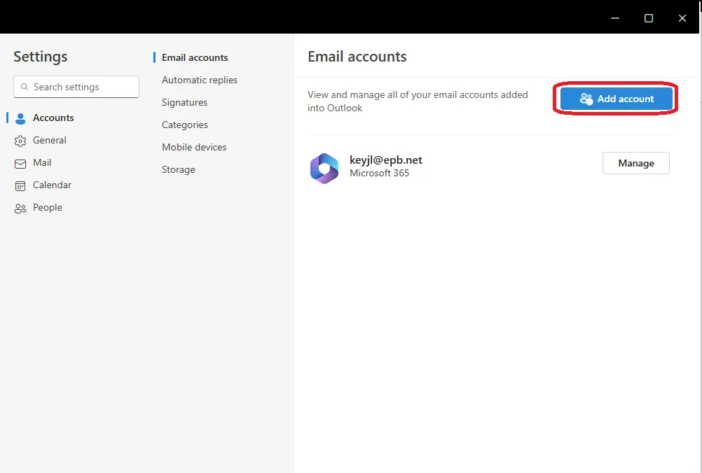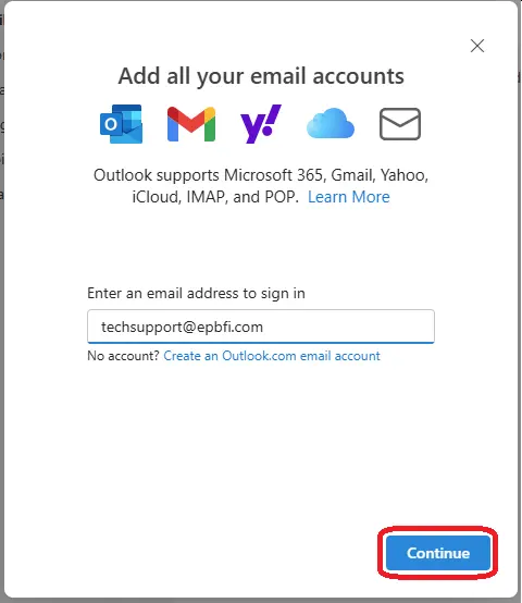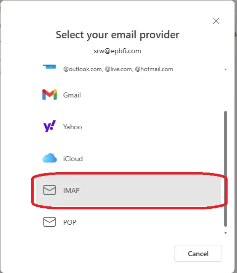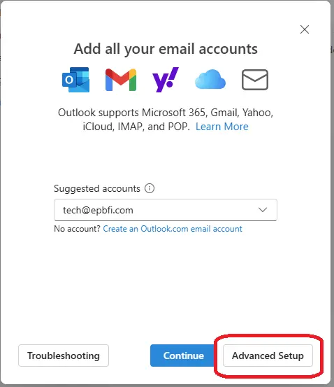 You will see a screen similar to the 'add account' step, but now there will be and Advanced Setup option.