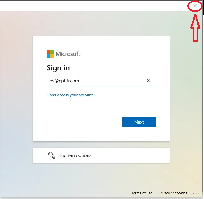 If you get this Microsoft login pop up, Just hit the "X" in the top right.